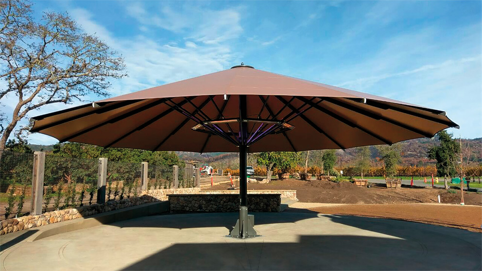 Der Jumbrella Großschirm zeichnet sich durch eine Vielzahl an Kombinationsmöglichkeiten und Besonderheiten seiner Zusatzausstattung aus. Die Ausführungen lassen sich individuell kombinieren, je nach technischen Anforderungen.